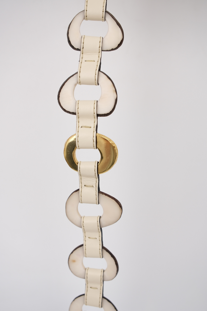 Ahora para la colección Alhaja, la clásica tagua de Ballen se transforma, con un baño de oro que eleva su origen natural con un toque de luz y sofisticación. Nuestro TAGUA BELT, elaborado con cuero y semillas de tagua, es la combinación perfecta de herencia colombiana y elegancia consciente.