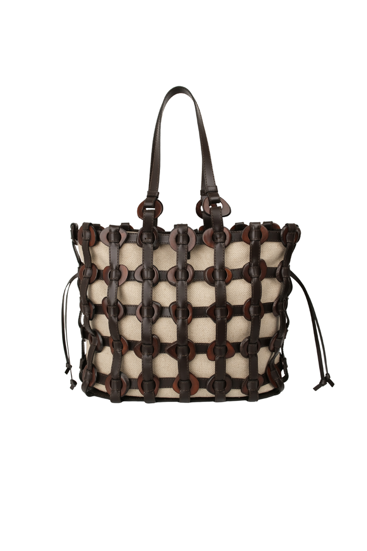 Nuestro TAGUA SHOPPER inspirado en los tradicionales bolsos de compras presenta una silueta innovadora. Elaborado con cuero italiano, semillas de tagua entrelazadas y despuntes blancos, este bolso es ideal para los mandados del día a día. Viene con una forro de Hemp extraíble que lo hace versátil y maximiza su utilidad.